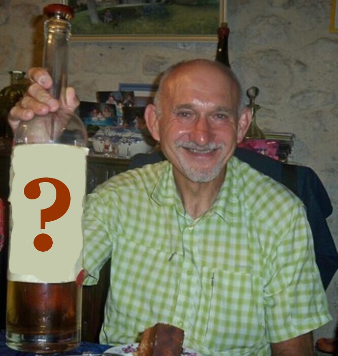 Qu'y a-t-il dans la bouteille qu'il tient dans la main ?