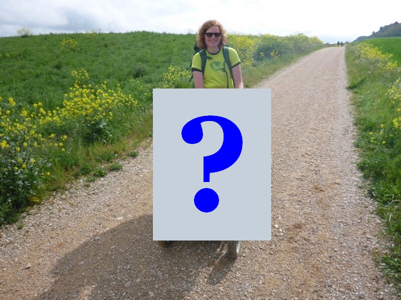 Cette pèlerine marche sur le Camino Aragonés, une petite voiture devant elle.